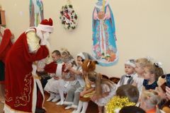 Каждый год в конце декабря для воспитанников всех возрастных групп организуются праздничные новогодние утренники. Красиво украшенный зал, нарядная елка, великолепные костюмы, подарки, Дед Мороз, Снегурочка и множество других сказочных персонажей ожидали наших воспитанников.