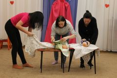 В группе «Лучики» состоялось праздничное мероприятие для дорогих и любимых мам, на котором дети рассказывали стихи о маме, танцевали и спели песню. А педагоги проверили, умеют ли наши мамы заплести косичку, запеленать малыша, изготовить поделки из газеты, нарисовать портрет своего ребенка. Нужно отметить, что все мамы прекрасно справились со всеми заданиями!