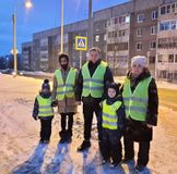 Дошкольники с родителями напоминали детям-пешеходам о правилах безопасности при пересечении проезжей части, о необходимости быть внимательными и использовать световозвращающие элементы, а также напоминали, что использование капюшона на проезжей части таит в себе опасность для пешехода.