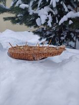 Представленная на конкурс игрушка-кормушка называется - Ковчег. Согласно Библии он был построен для спасения от Потопа своей семьи и всех животных. У Насти кормушка выполнена в виде большой лодки из теста. Тесто приготовлено из пшеничной муки и воды. В Ковчег вмещается 3.5кг зерна, что поможет на долгое время обеспечить кормом птиц и пережить им холодные зимние дни.
