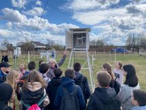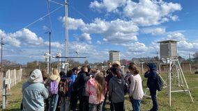 Ребята побывали на метеоплощадке, узнали, как собирают сведения о погоде, познакомились с метеорологическими приборами — разнообразными термометрами, осадкомером, флюгерами и другими. Побывали на рабочем месте метеоролога, где в специальные журналы вносят данные наблюдений и передают в Гидрометцентр России.