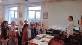 Мы заглянули в кабинет, а там работает Вокальная студия. «Ребята поют охотно, с удовольствием, и это здорово, т.к. это способствует умению искренне, глубоко выразить свои чувства, переживания. Встреча с песней, общение с ней окрашивается светлой радостью, вызывающей положительные эмоции», – поделилась с нами руководитель и вдохновитель студии Анна Евгеньевна Прокопьева – «все детишки с радостью приходят на занятия, старательно, усердно и с большим удовольствием занимаются вокалом, разучивают песни. Сейчас мы активно готовимся к конкурсу школьных хоров, в котором будем участвовать в ноябре».