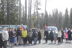 Автоколонна из 22 автомашин проследовала от Школы № 35 Пятого поселка до Пряжинского района, поселок Виллагора.