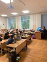 Также почти в каждом классе состоялись встречи «100 вопросов к папе». В 3 «в» классе папа Гаврилова Захара, Илья Владимирович, рассказал о службе в Вооружённых Силах России. «Я не ожидал, что ребята будут задавать так много вопросов», - поделился с нами Илья Владимирович, «мы обсудили с ребятами что такое долг, честь, служба Отечеству, какие качества необходимы в работе военного. Получил от встречи огромное удовольствие, спасибо, что дали возможность поделиться знаниями с третьеклассниками».