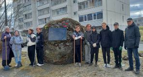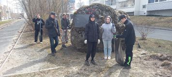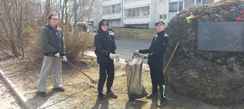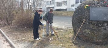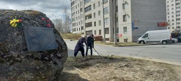 В преддверии Дня Победы учащиеся 10-го «А» класса вместе с учителем истории Моториной Н.А. и преподавателем-организатором ОБЖ Кульпетовым К.О. провели субботник у Памятного камня, установленного на месте размещения концлагеря №5.