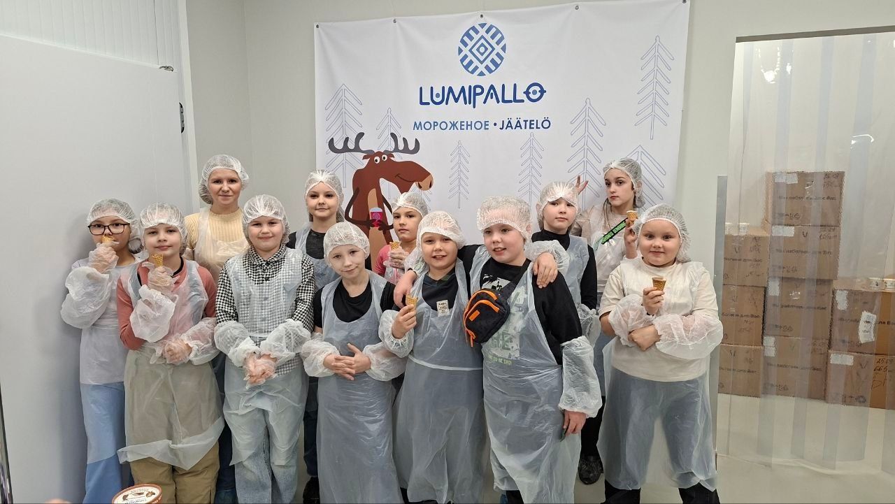Ученики 4«Б» и 3 «Б» класса, вместе с классным руководителем Цыгановой Е.А., посетили фабрику мороженого LUMIPALLO.