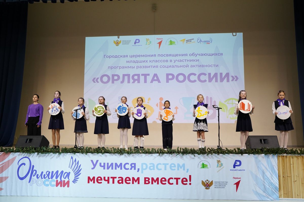 Во флагманской школе по реализации программы «Орлята России», школе № 55, состоялось торжественное событие — городское посвящение учеников 5 школ Петрозаводска в участников программы социальной активности «Орлята России».