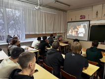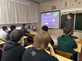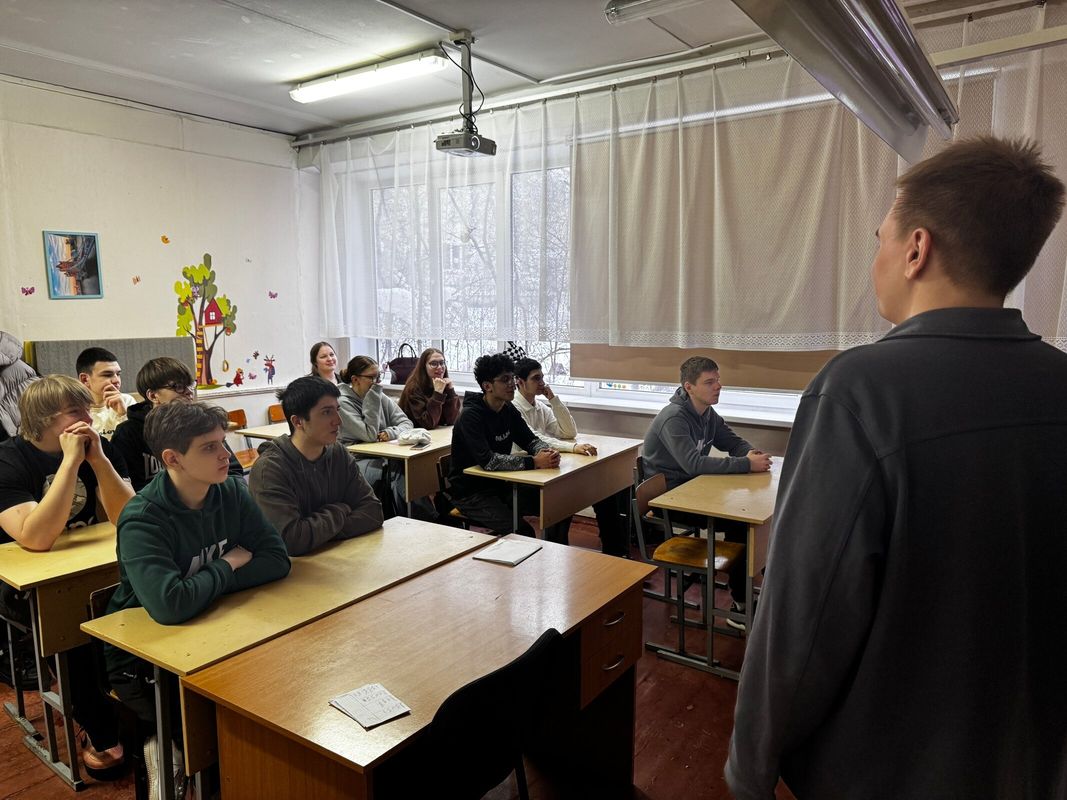 Советник директора по воспитанию С.В. Басин провел экранную игру "Грамотность на Руси" для учеников 11 класса.