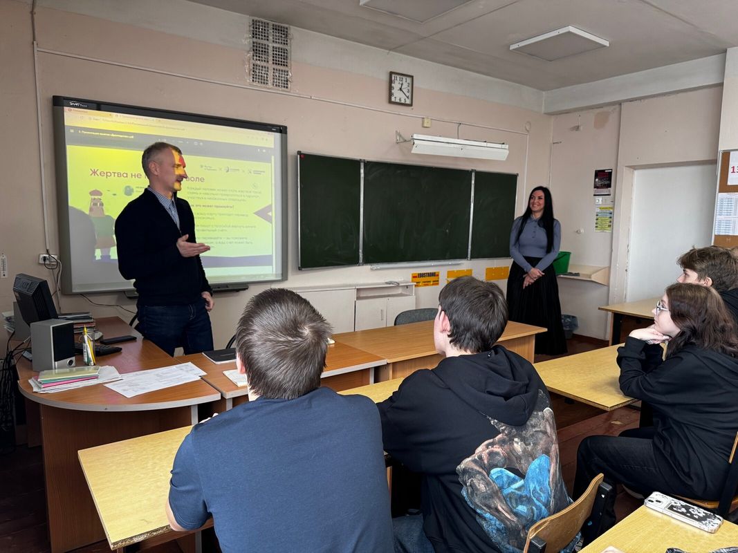 Дарья Юрьевна и Евгений Вячеславович рассказали ученикам о безопасности в сети. Они объяснили, почему нельзя делиться своими паролями и данными карт, вестись на предложения легкого заработка или возвращать деньги незнакомцам, которые якобы ошиблись переводом. Также посоветовали проверять работодателей и звонить в банк только по официальным номерам.