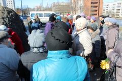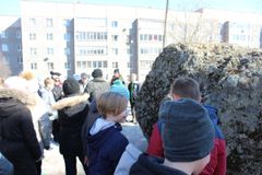 11 апреля у Камня памяти Пятого лагеря состоялся митинг посвященный Международному дню узника. В связи с этим событием приехало очень много людей почтить память погибших и переживших те голодные и холодные годы, среди которых были бывшие узники, эти уважаемые люди со скорбью и со слезами на глазах вспоминали те страшные события, голод и смерть... Встретили гостей обучающиеся 5 "А" и 5 "Б" классов, также учителя истории Тидякина Светлана Рудольфовна и Моторина Наталья Андреевна. Еще митинг приехали снимать из телевидения, взяли интервью у всех желающих.